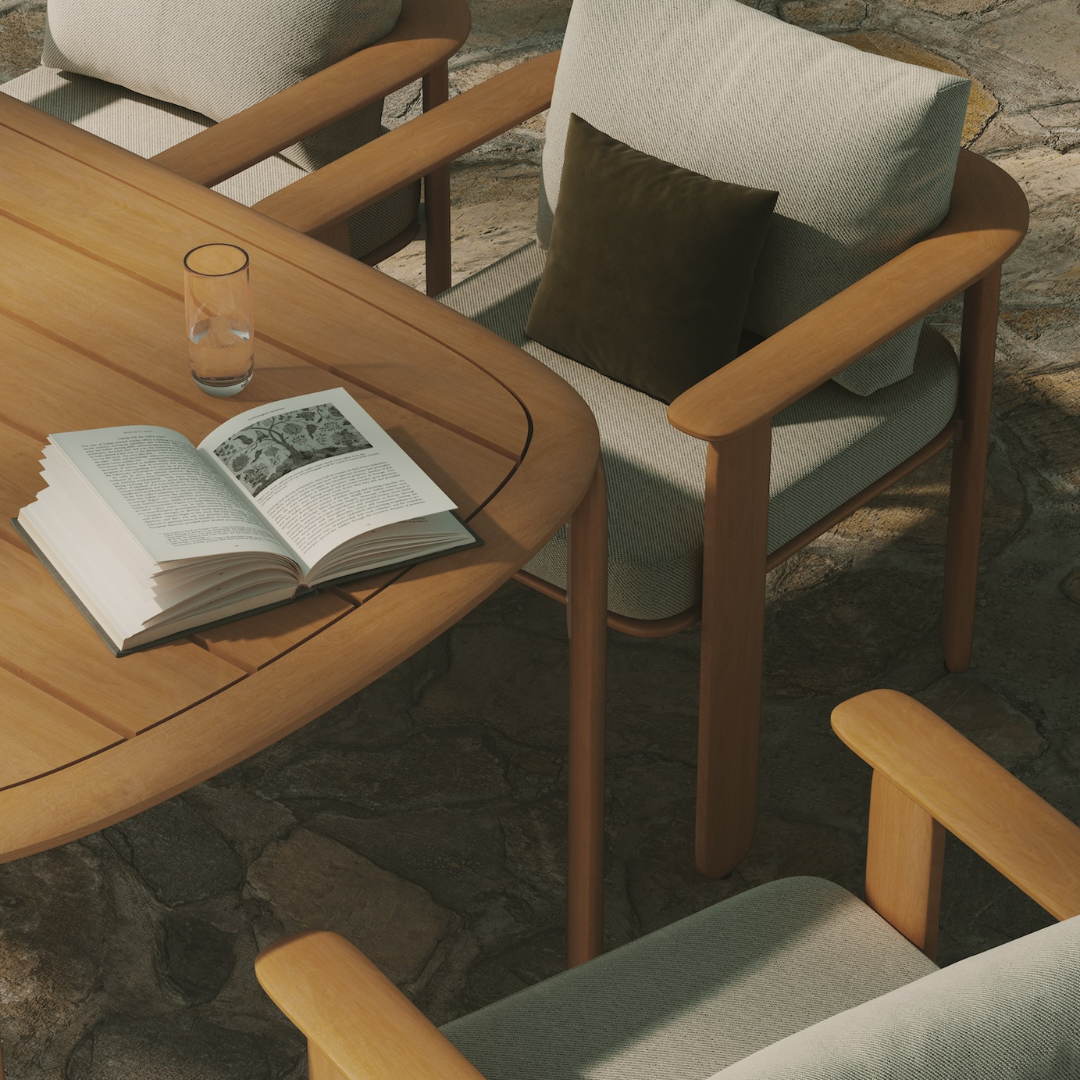 Designed to accommodate gatherings of family and friends, the table’s generous proportions celebrate communal meals and shared stories. Its simple lines and robust rounded legs provide welcoming foundation, while the slatted top enhances the table’s visual lightness and allows for easy maintenance. Perfect for any outdoor setting, this table promises to be the centrepiece around which cherished memories are made.